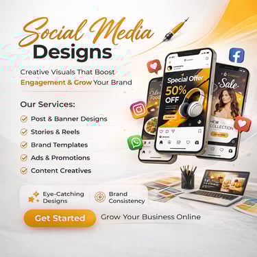 We design engaging and visually consistent social media creatives that help brands stand out online. Our designs are tailored for platforms like Instagram and Facebook, ensuring visual appeal, brand alignment, and higher engagement through attractive layouts and impactful visuals.